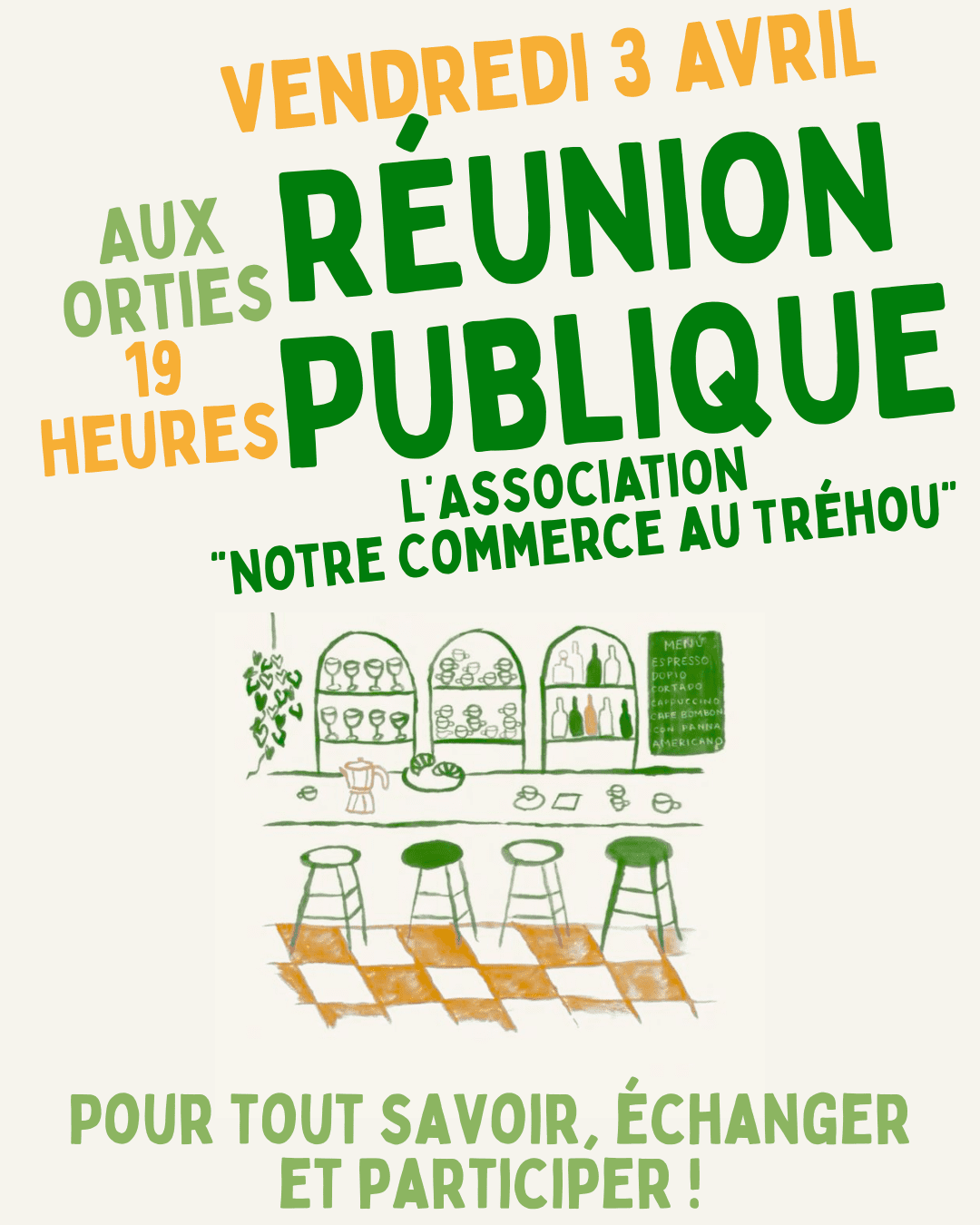REUNION PUBLIQUE de l’Association « Notre Commerce au Tréhou » Vendredi 3 avril à 19 heures Aux Orties Tu veux connaître l’histoire et le rôle de l’asso au […]