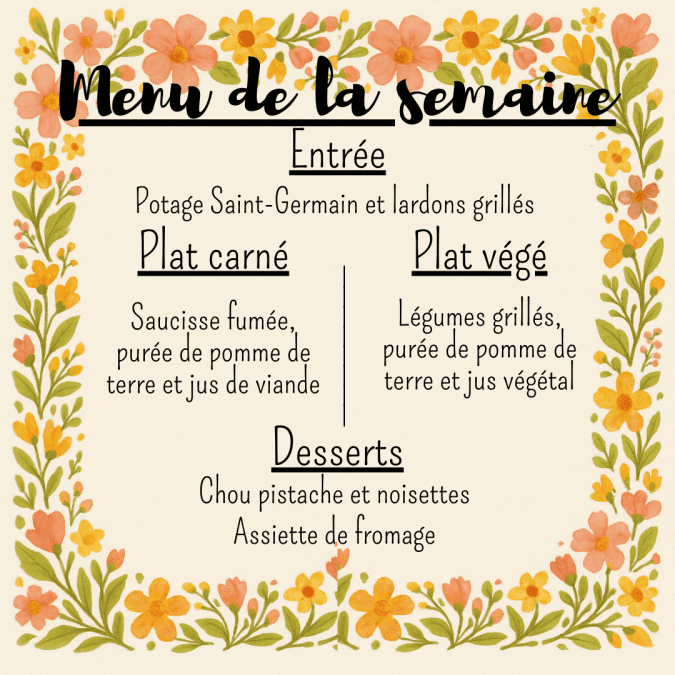 Menu du 15/07/2025 au 18/07/2025